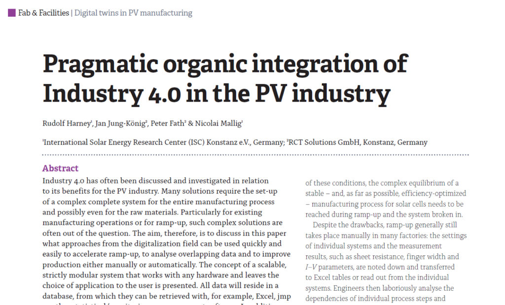 By Rudolf Harney and Nicolai Mallig of International Solar Energy Research Center (ISC) Konstanz e.V., Germany; Jan Jung-König and Peter Fath of RCT Solutions GmbH, Konstanz, Germany