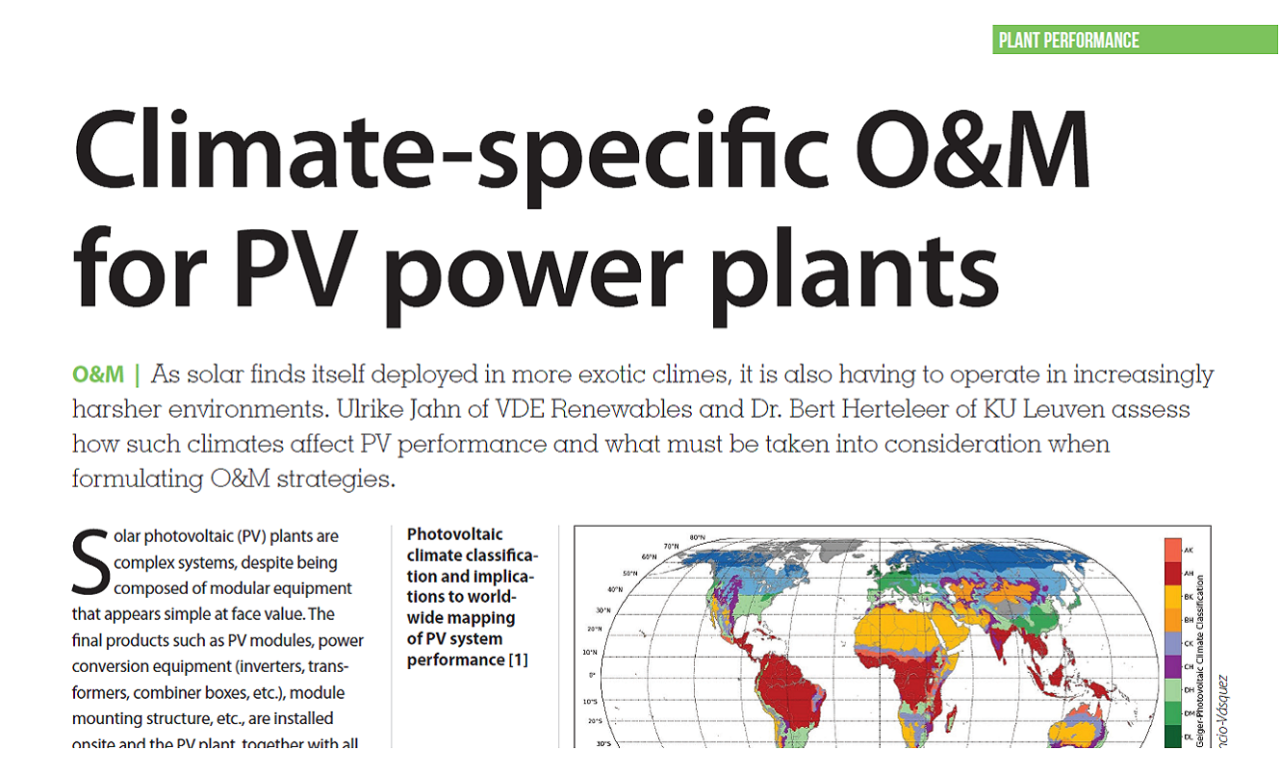 As solar finds itself deployed in more exotic climes, it is also having to operate in increasingly harsher environments. Ulrike Jahn of VDE Renewables and Dr. Bert Herteleer of KU Leuven assess how such climates affect PV performance and what must be taken into consideration when formulating O&M strategies.