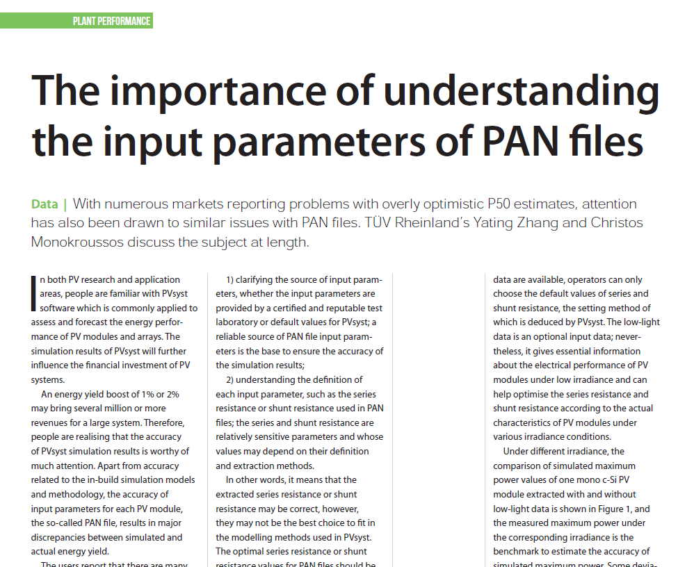 With numerous markets reporting problems with overly optimistic P50 estimates, attention has also been drawn to similar issues with PAN files. TÜV Rheinland’s Yating Zhang and Christos Monokroussos discuss the subject at length.