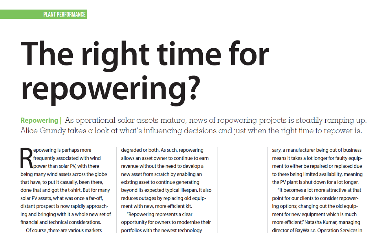 As operational solar assets mature, news of repowering projects is steadily ramping up. Alice Grundy takes a look at what’s influencing decisions and just when the right time to repower is.
