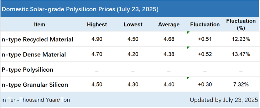 On July 23, the Silicon Industry Branch released the latest silicon material prices, which continued to rise this week. The highest increase reached 13.47%, making this the fourth consecutive week that prices have risen.