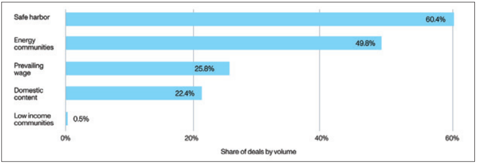 Eligibility for tax credits and any bonus adders is a critically important component of the due diligence process. Eligibility analysis is becoming more central to many advisors’ analysis as the safe harbour windows for certain common bonuses, including the PWA bonus adder, lapsed in 2023. Projects must justify the base tax credit that they are claiming and must demonstrate qualification for any bonus adders. Crux has found that the majority of tax credit transactions in 2024 included the safe harbor and/or another bonus adder.